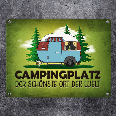 Ab €12,95Grundpreis /Nicht verfügbarAuf LagerCampingplatz Metallschild mit Wohnwagen Motiv Wohnmobil Urlaub Hobby Natur Ort