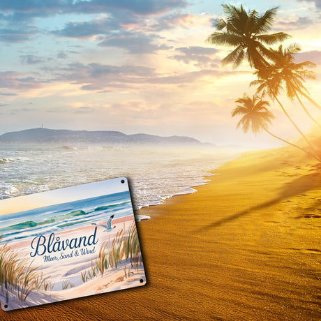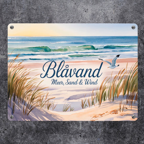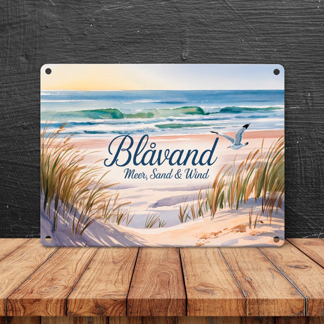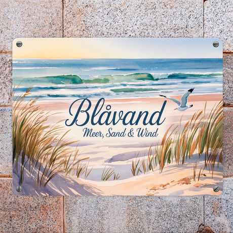 Ab €19,95Grundpreis /Nicht verfügbarAuf LagerBlåvand – Meer, Sand & Wind Metallschild in 15x20 cm mit Möwe für Dänemark-Fans