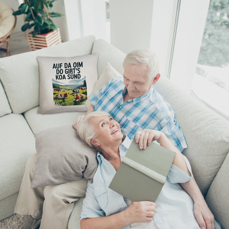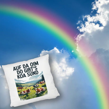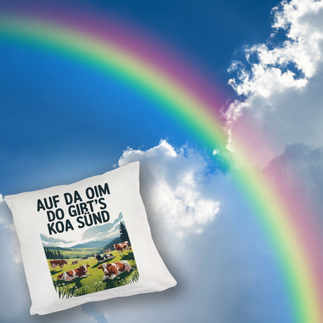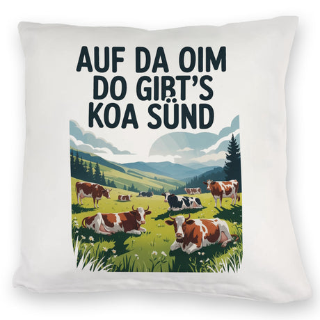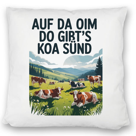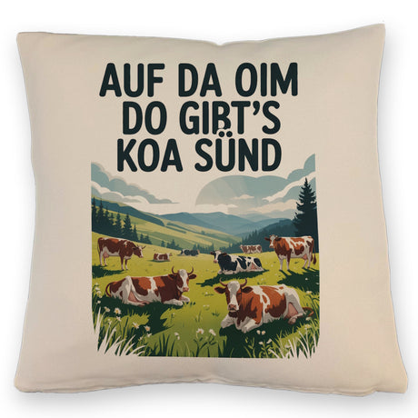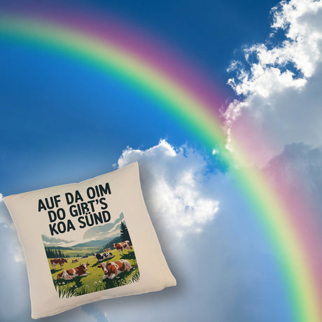 €4,95Grundpreis /Nicht verfügbarAuf LagerAuf da Oim, do gibt's koa Sünd Kissen Berglandschaft mit Kühen