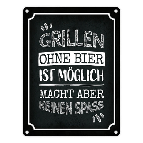 Grillen ohne Bier ist möglich macht aber keinen Spaß Metallschild