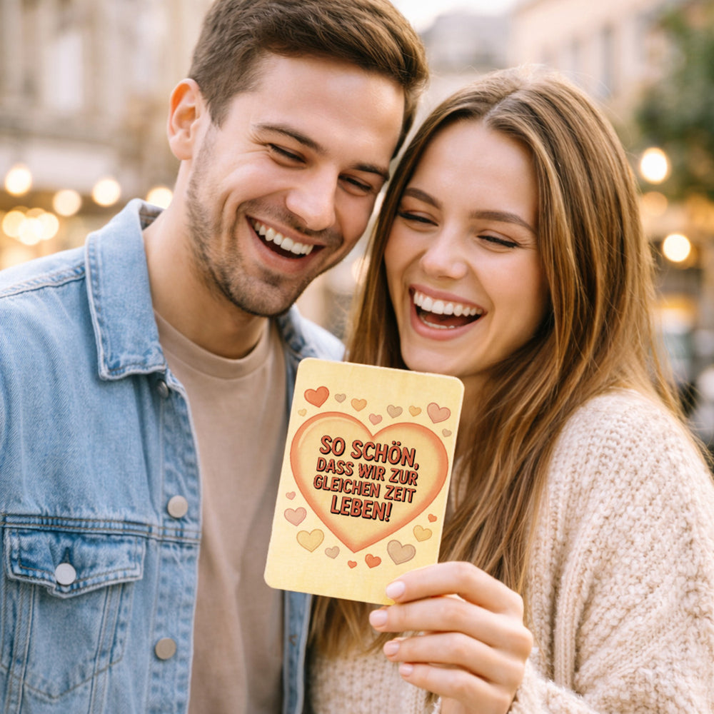 So schön, dass wir zur gleichen Zeit leben! Postkarte aus Holz
