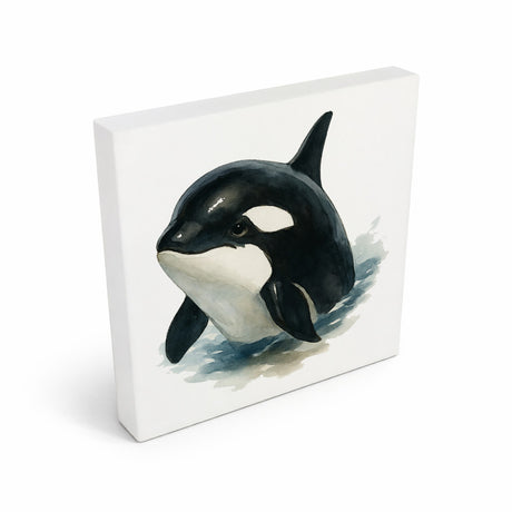 Wasserleben Delfin Aquarell Holzbild in 10x10 cm zum Stellen oder Aufhängen