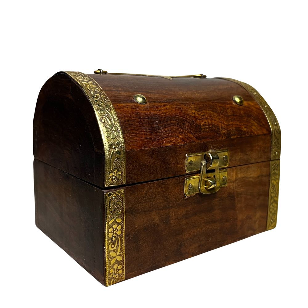 - Die Schatztruhe ist durch einen Klappverschluss verschlossen.