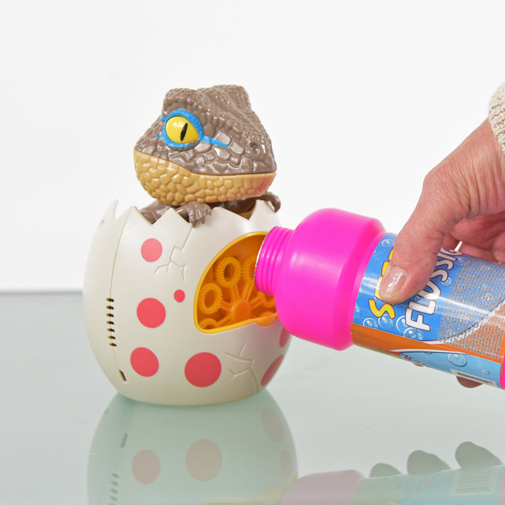 - Lieferumfang: 1x Dinosaurier im Ei Seifenblasenpistole bestehend aus 1x Seifenblasendino und 1x Seifenblasenflüssigkeit.