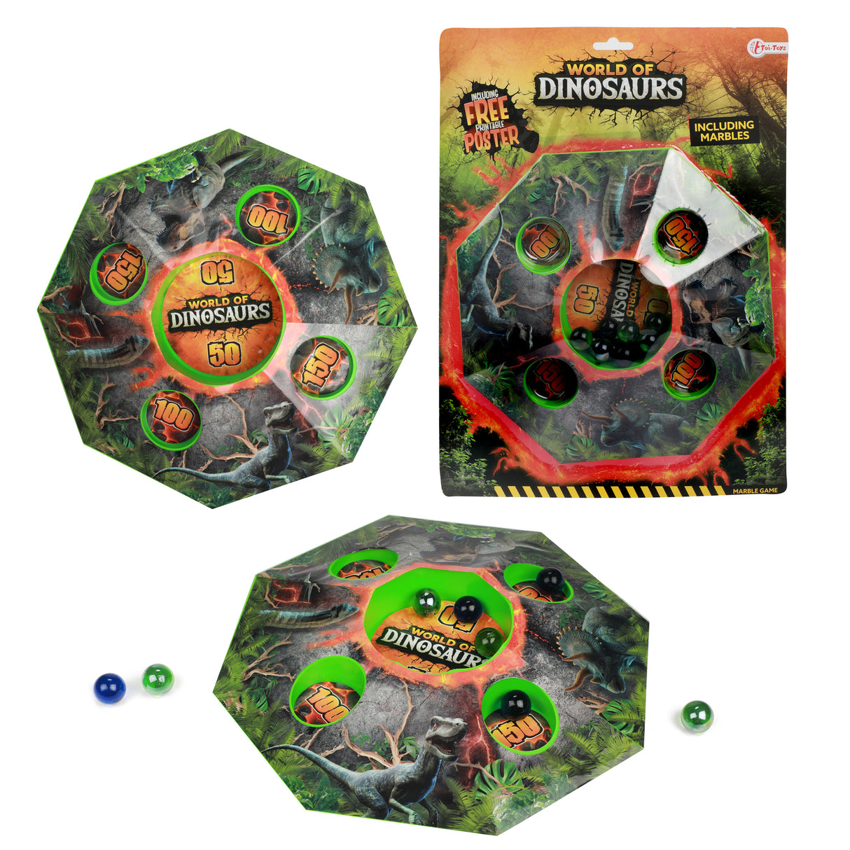 - Lieferumfang: 1x Dinosaurier Murmelspiel bestehend aus 1x Spielbrett und 10x Murmeln.