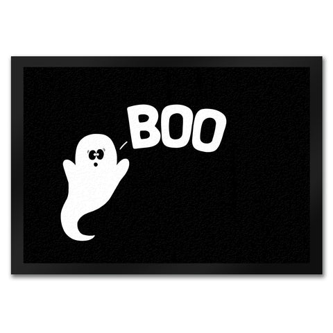 Fußmatte mit kleinem Geist und Boo Schriftzug im schlichten Halloween Stil