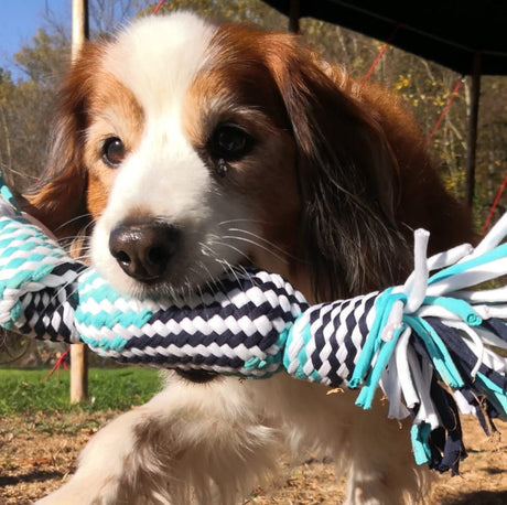 Wurftau Hundespielzeug mit Quietscheffekt in gelb-blau