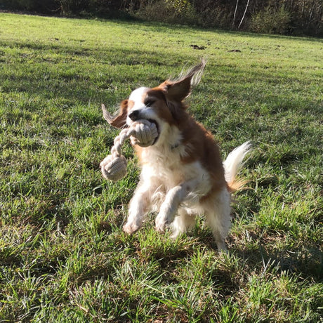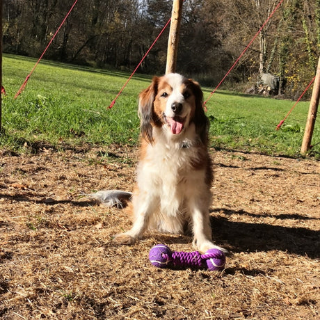 Hunde-Hantel Hundespielzeug mit Tennisball in lila