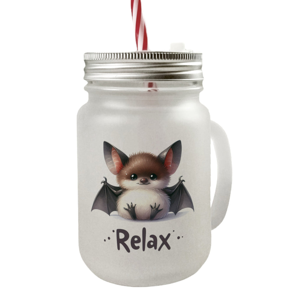 Baby Fledermaus Trinkglas mit Bambusdeckel mit Spruch Relax