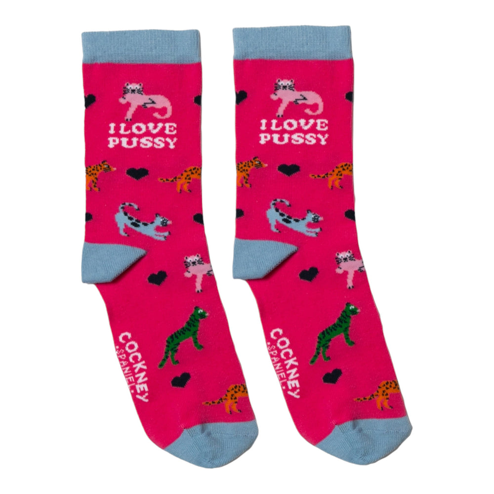 I love pussy Socken Funsocken Damen Katzen Strümpfe in 37-42 im Paar