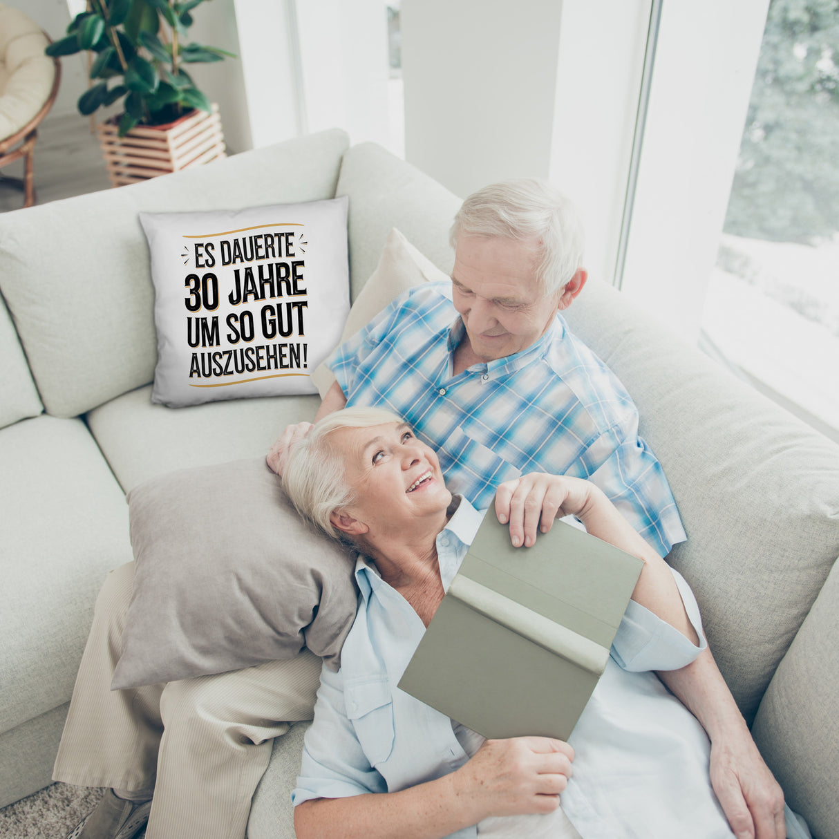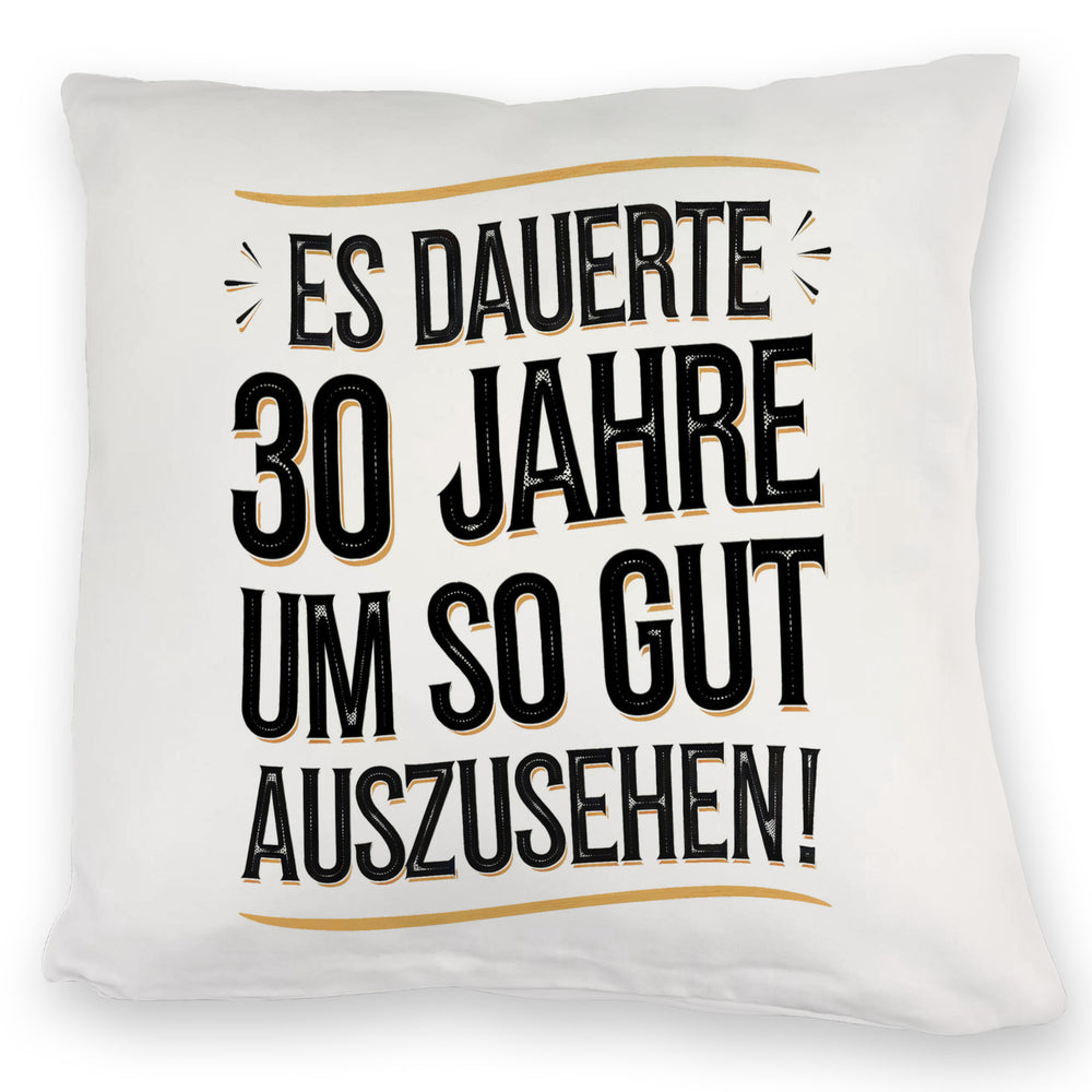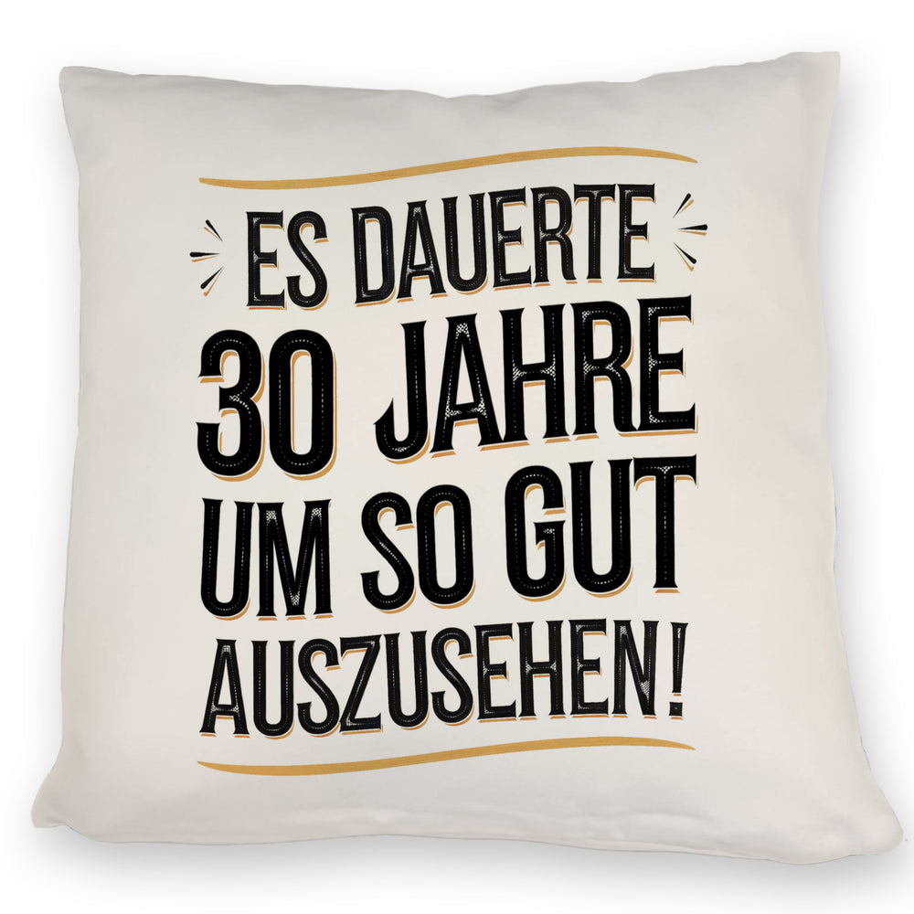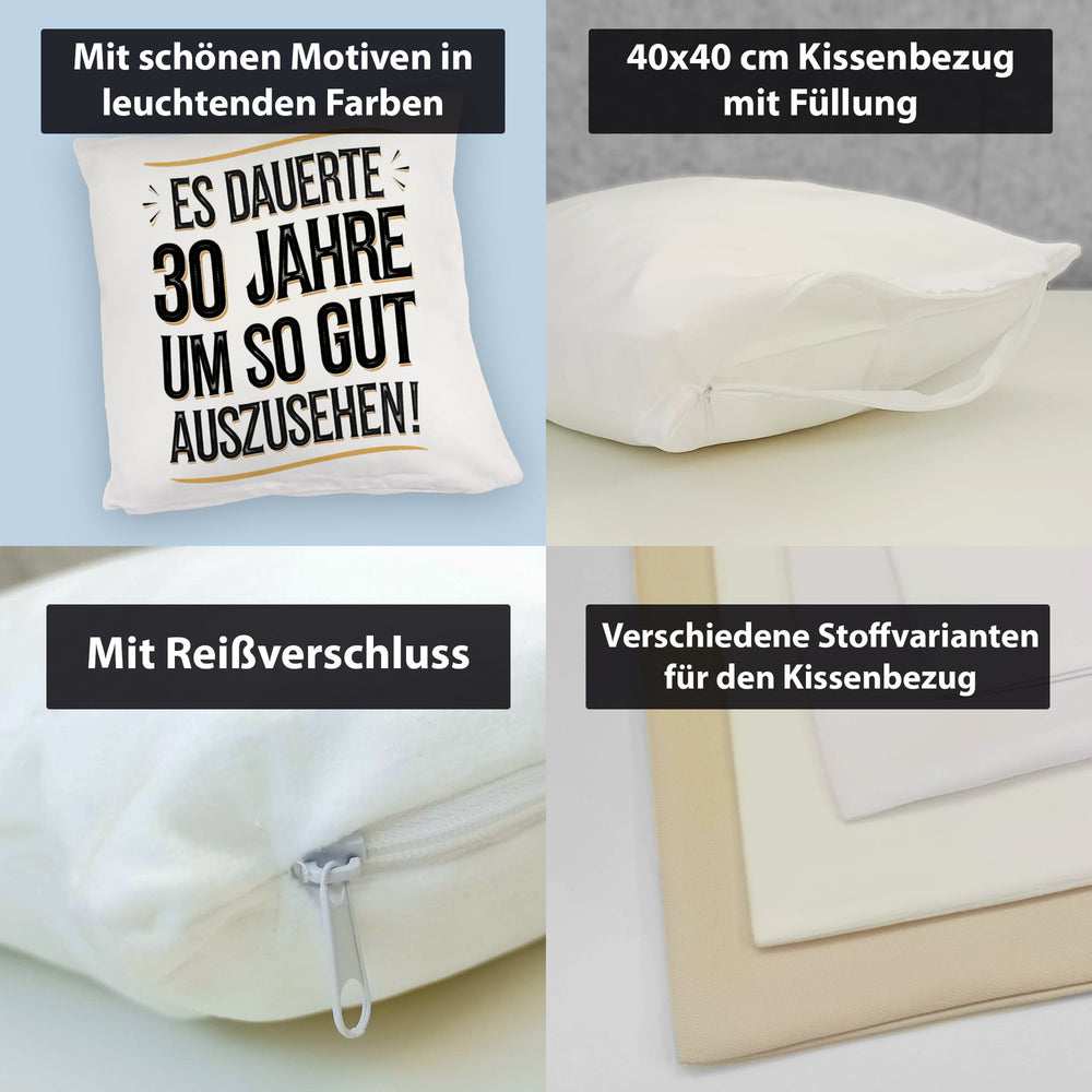 • 1x Es dauerte 30 Jahre Retro Kissen mit Spruch in der gewählten Ausführung