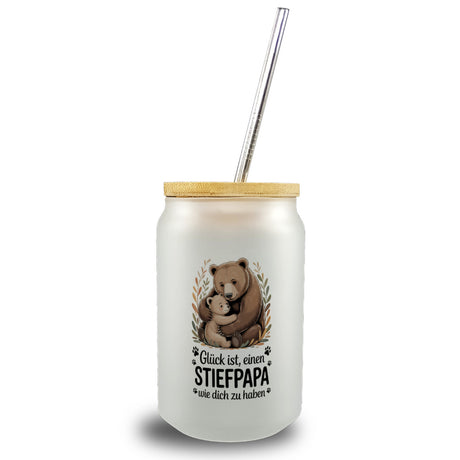 Glück ist einen Stiefpapa wie dich zu haben Bärenumarmung Trinkglas mit Bambusdeckel Vatertag
