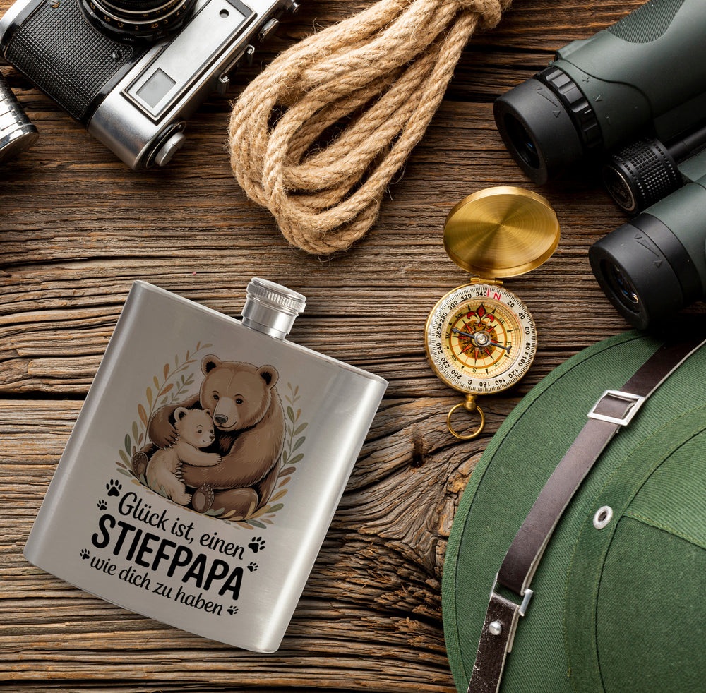 Glück ist einen Stiefpapa wie dich zu haben Bärenumarmung Flachmann Vatertag