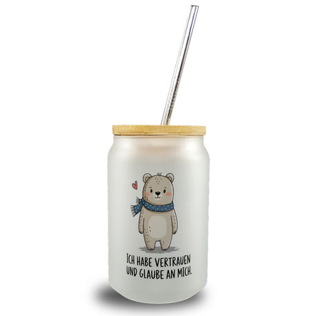 Ich habe vertrauen und glaube an mich Bär mit Herz Trinkglas mit Bambusdeckel
