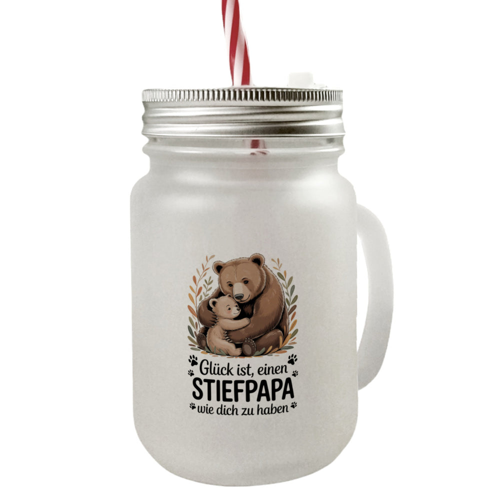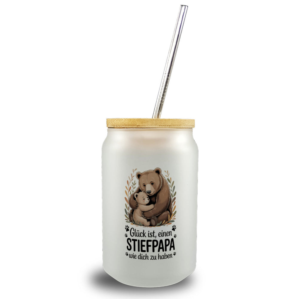 - 1x Glück ist einen Stiefpapa wie dich zu haben Bärenumarmung Trinkglas mit Bambusdeckel Vatertag mit Bambusdeckel oder Henkel