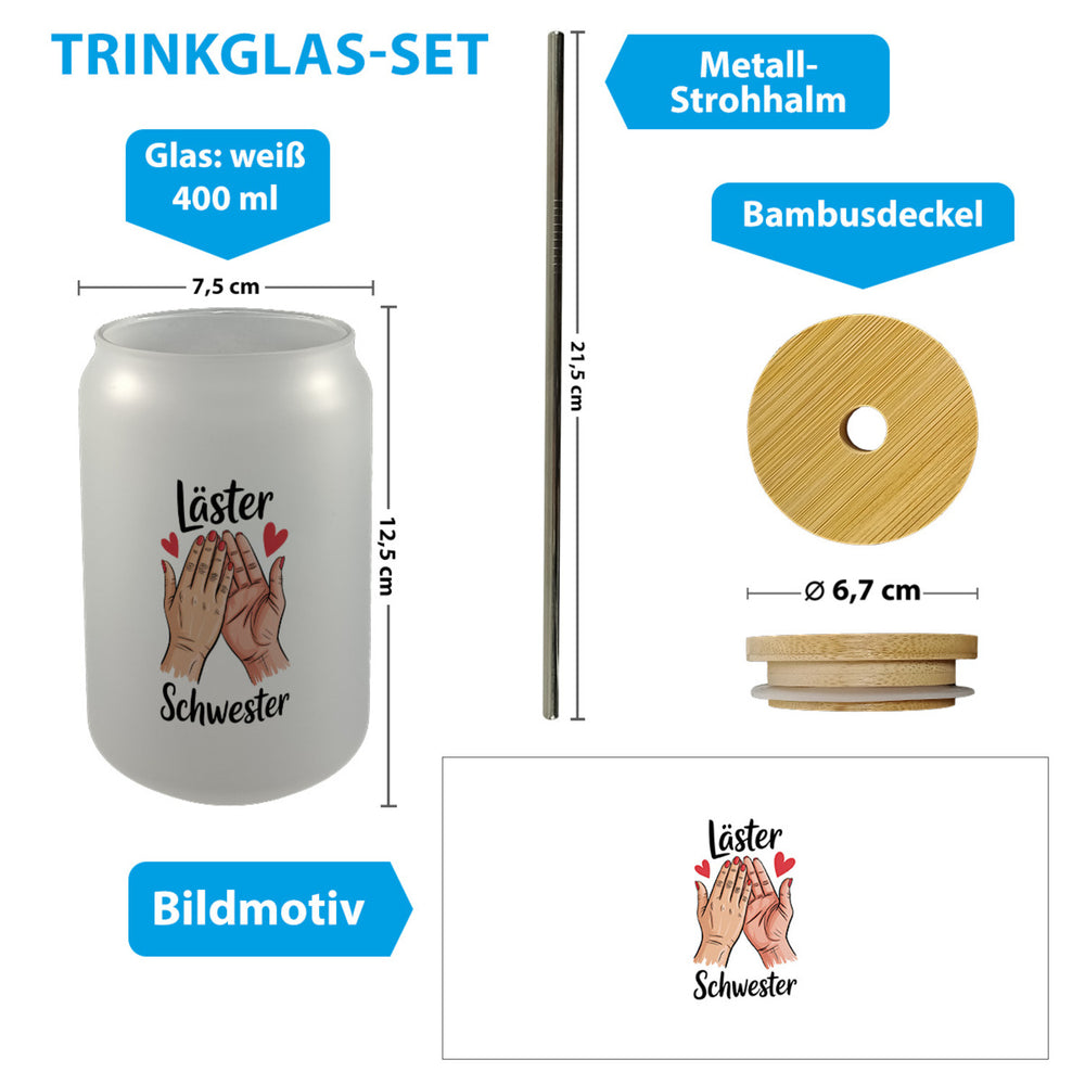 - 1x Läster Schwester Trinkglas mit Bambusdeckel für die beste Freundin mit Bambusdeckel oder Henkel