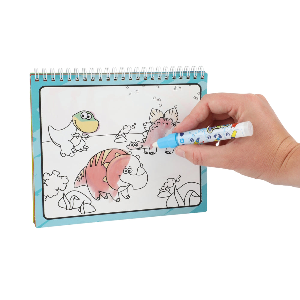 Dinosaurier Wassermalbuch mit Wasserstift und vier Entdeckerszenen zum Wiederverwenden