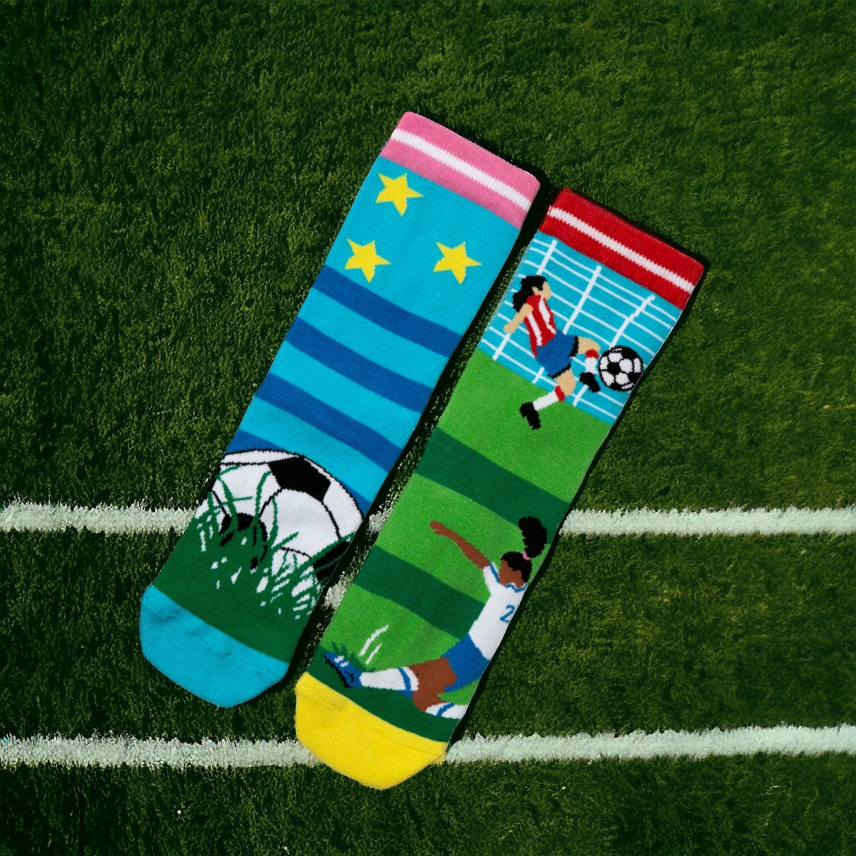 - Diese Socken schießen ein Design-Tor! Ob beim Nachstellen legendärer Trainingsszenen im heimischen Garten oder als Glücksbringer bei einem echten Fußballspiel – das abwechslungsreiche Motiv-Potpourri, von Torhüterin bis Fußballfeld, macht jedes Paar zum Highlight im Schuhschrank.