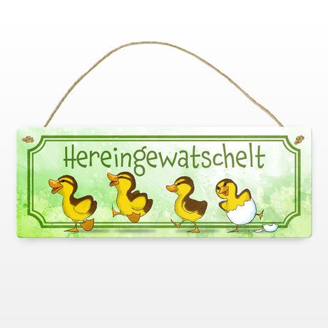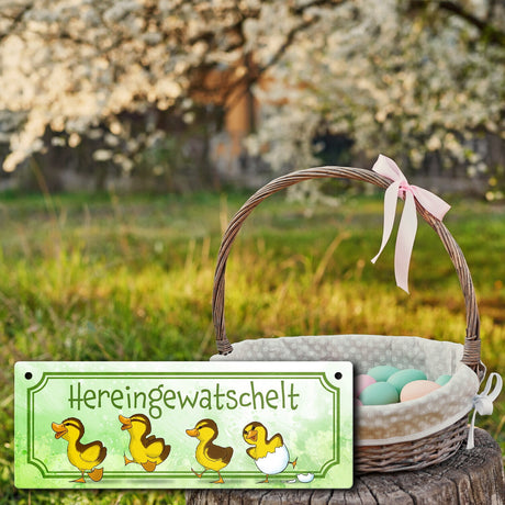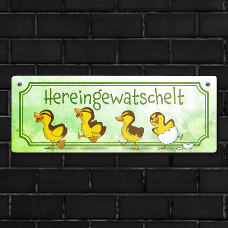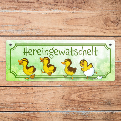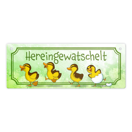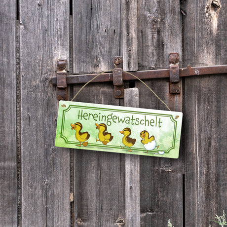Hereingewatschelt Metallschild mit niedlichen Entchen
