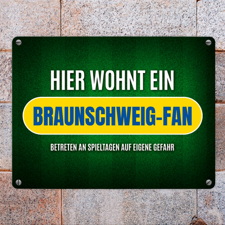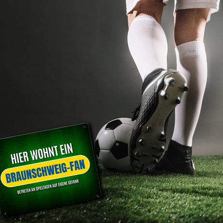 Ab €16,95Grundpreis /Nicht verfügbarAuf LagerHier wohnt ein Braunschweig-Fan Metallschild mit Rasen Motiv