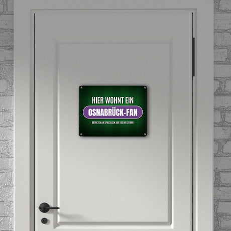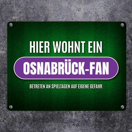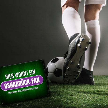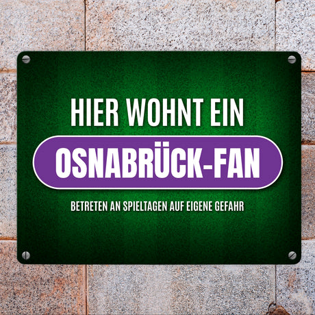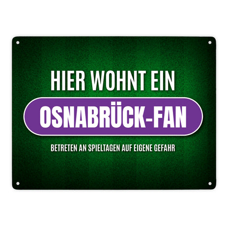 Hier wohnt ein Osnabrück-Fan Metallschild mit Rasen Motiv