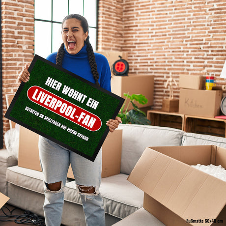 Hier wohnt ein Liverpool-Fan Fußmatte in 35x50 cm mit Rasenmotiv