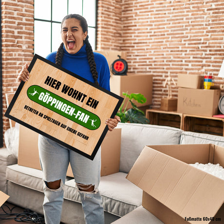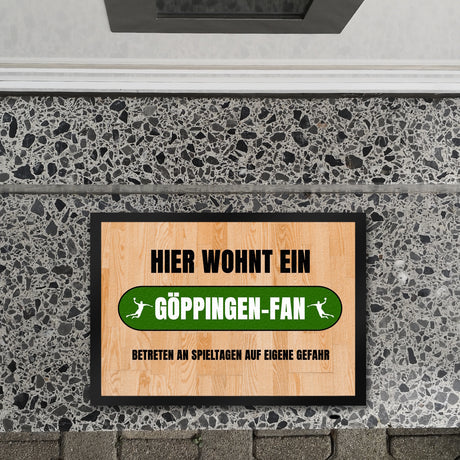 Ab €16,95Grundpreis /Nicht verfügbarAuf LagerHier wohnt ein Göppingen-Fan Fußmatte in 35x50 cm mit Turnhallenboden Motiv