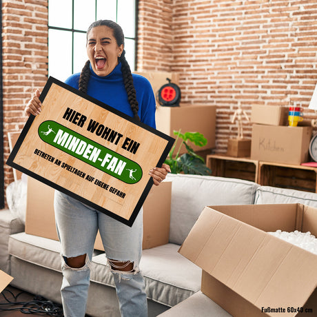 Ab €16,95Grundpreis /Nicht verfügbarAuf LagerHier wohnt ein Minden-Fan Fußmatte in 35x50 cm mit Turnhallenboden Motiv