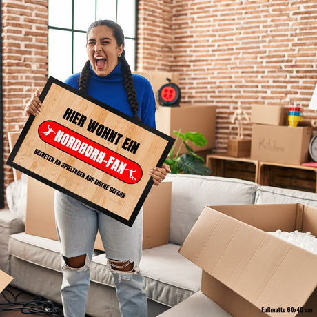 Ab €16,95Grundpreis /Nicht verfügbarAuf LagerHier wohnt ein Nordhorn-Fan Fußmatte in 35x50 cm mit Turnhallenboden Motiv