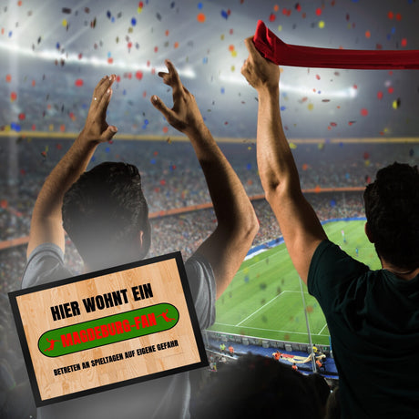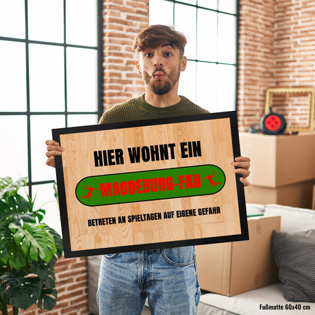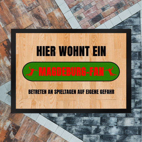 Ab €16,95Grundpreis /Nicht verfügbarAuf LagerHier wohnt ein Magdeburg-Fan Fußmatte in 35x50 cm mit Turnhallenboden Motiv