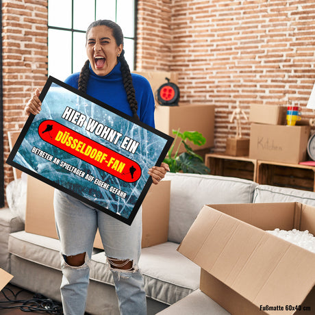 Ab €16,95Grundpreis /Nicht verfügbarAuf LagerHier wohnt ein Düsseldorf-Fan Fußmatte in 35x50 cm mit Eishallen Boden-Motiv