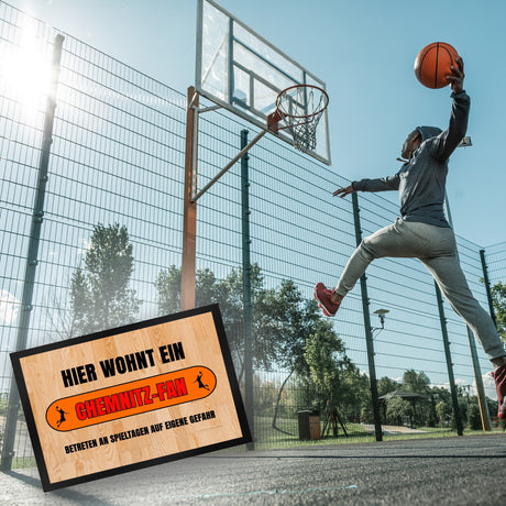 Ab €16,95Grundpreis /Nicht verfügbarAuf LagerHier wohnt ein Chemnitz-Fan Fußmatte in 35x50 cm mit Turnhallenboden Motiv