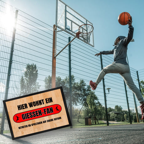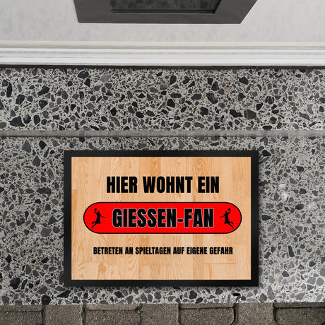 Ab €16,95Grundpreis /Nicht verfügbarAuf LagerHier wohnt ein Giessen-Fan Fußmatte in 35x50 cm mit Turnhallenboden Motiv