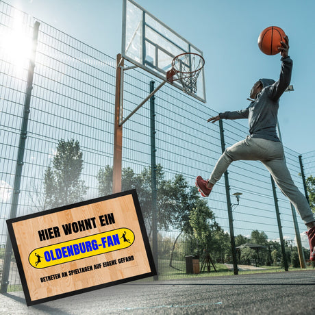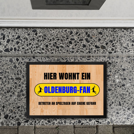 Ab €16,95Grundpreis /Nicht verfügbarAuf LagerHier wohnt ein Oldenburg-Fan Fußmatte in 35x50 cm mit Turnhallenboden Motiv