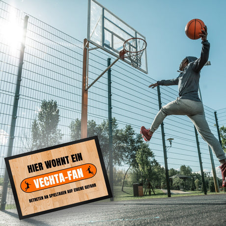 Ab €12,95Grundpreis /Nicht verfügbarAuf LagerHier wohnt ein Vechta-Fan Fußmatte in 35x50 cm mit Turnhallenboden Motiv