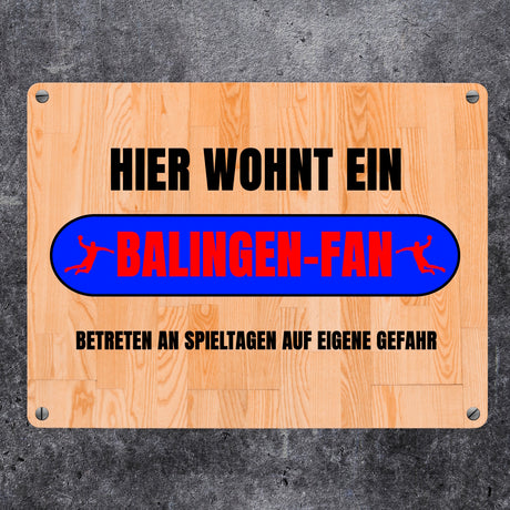 Ab €8,95Grundpreis /Nicht verfügbarAuf LagerHier wohnt ein Balingen-Fan Metallschild in 15x20 cm mit Turnhallenboden Motiv