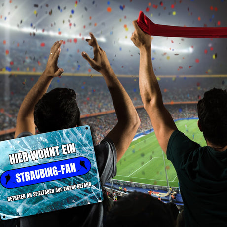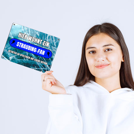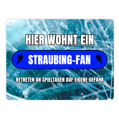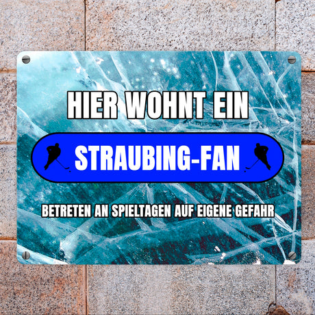 Hier wohnt ein Straubing-Fan Metallschild in 15x20 cm mit Eishallen Boden-Motiv