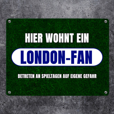 Ab €8,95Grundpreis /Nicht verfügbarAuf LagerHier wohnt ein London-Fan Metallschild in 15x20 cm mit Rasenmotiv
