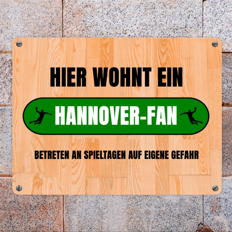 Ab €8,95Grundpreis /Nicht verfügbarAuf LagerHier wohnt ein Hannover-Fan Metallschild in 15x20 cm mit Turnhallenboden Motiv
