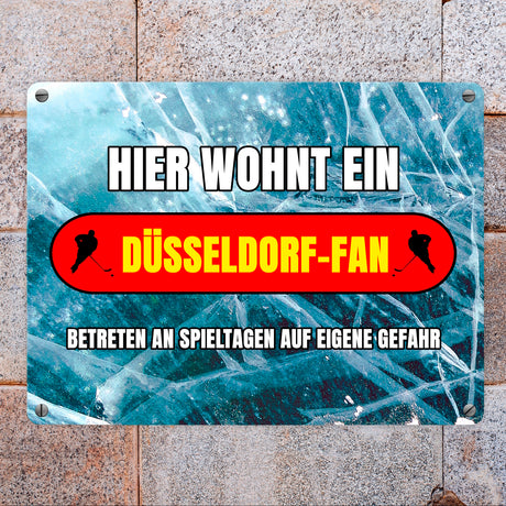 Ab €8,95Grundpreis /Nicht verfügbarAuf LagerHier wohnt ein Düsseldorf-Fan Metallschild in 15x20 cm mit Eishallen Boden-Motiv