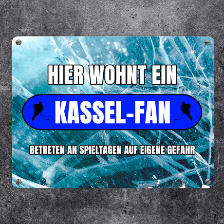 Ab €8,95Grundpreis /Nicht verfügbarAuf LagerHier wohnt ein Kassel-Fan Metallschild in 15x20 cm mit Eishallen Boden-Motiv