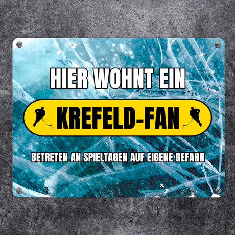 Ab €8,95Grundpreis /Nicht verfügbarAuf LagerHier wohnt ein Krefeld-Fan Metallschild in 15x20 cm mit Eishallen Boden-Motiv
