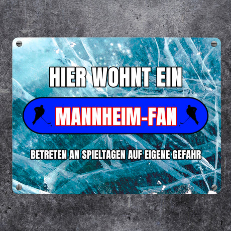Ab €8,95Grundpreis /Nicht verfügbarAuf LagerHier wohnt ein Mannheim-Fan Metallschild in 15x20 cm mit Eishallen Boden-Motiv