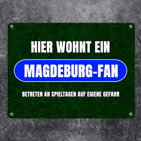 Ab €8,95Grundpreis /Nicht verfügbarAuf LagerHier wohnt ein Magdeburg-Fan Metallschild in 15x20 cm mit Rasenmotiv