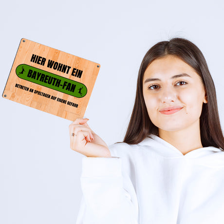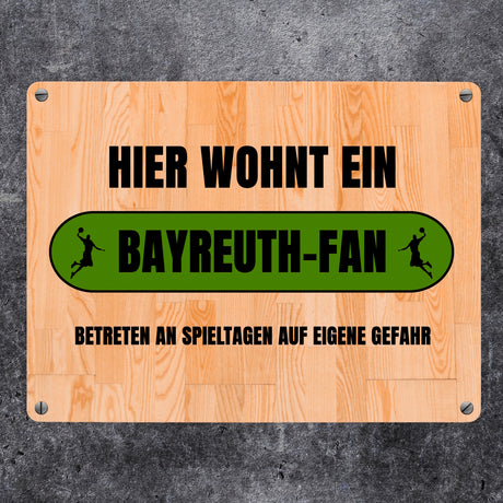 Ab €8,95Grundpreis /Nicht verfügbarAuf LagerHier wohnt ein Bayreuth-Fan Metallschild in 15x20 cm mit Turnhallenboden Motiv
