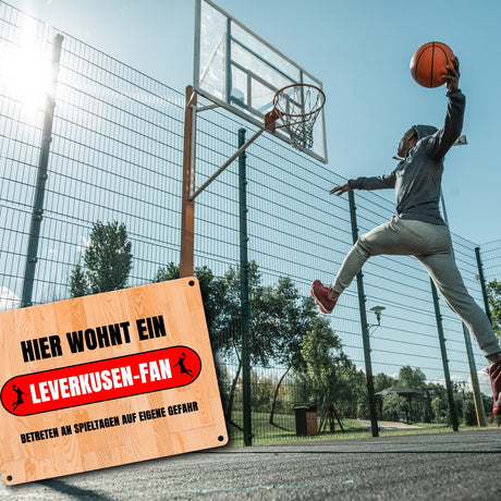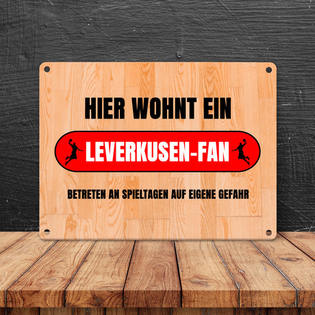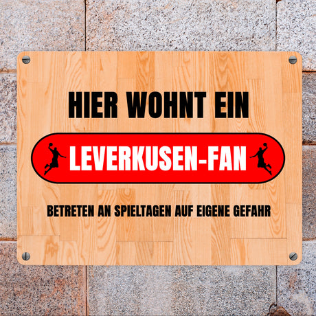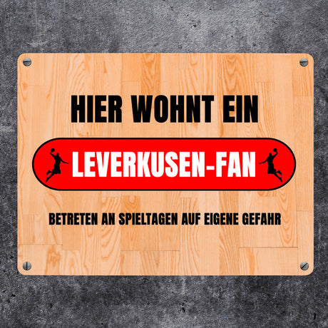 Ab €12,95Grundpreis /Nicht verfügbarAuf LagerHier wohnt ein Leverkusen-Fan Metallschild in 15x20 cm mit Turnhallenboden Motiv