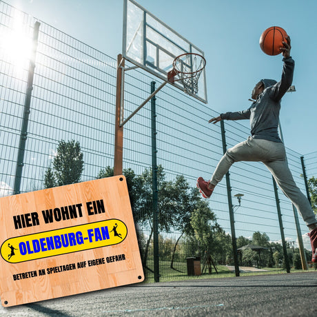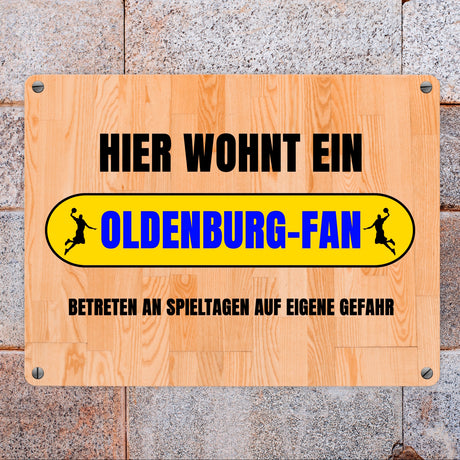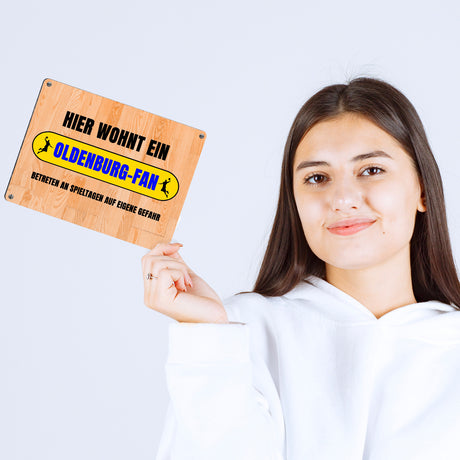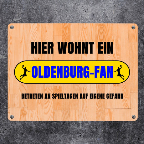 Ab €8,95Grundpreis /Nicht verfügbarAuf LagerHier wohnt ein Oldenburg-Fan Metallschild in 15x20 cm mit Turnhallenboden Motiv