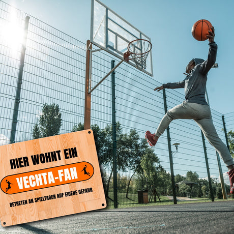 Ab €8,95Grundpreis /Nicht verfügbarAuf LagerHier wohnt ein Vechta-Fan Metallschild in 15x20 cm mit Turnhallenboden Motiv
