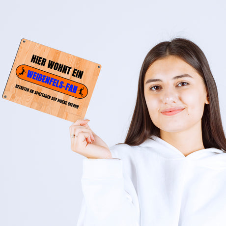 Ab €8,95Grundpreis /Nicht verfügbarAuf LagerHier wohnt eenfels-Fan Metallschild in 15x20 cm mit Turnhallenboden Motiv