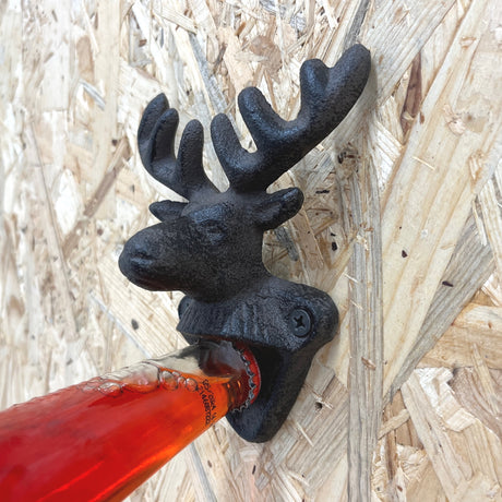 €3,49Grundpreis /Nicht verfügbar Hirsch Flaschenöffner aus Gusseisen mit Holzbrett